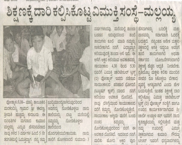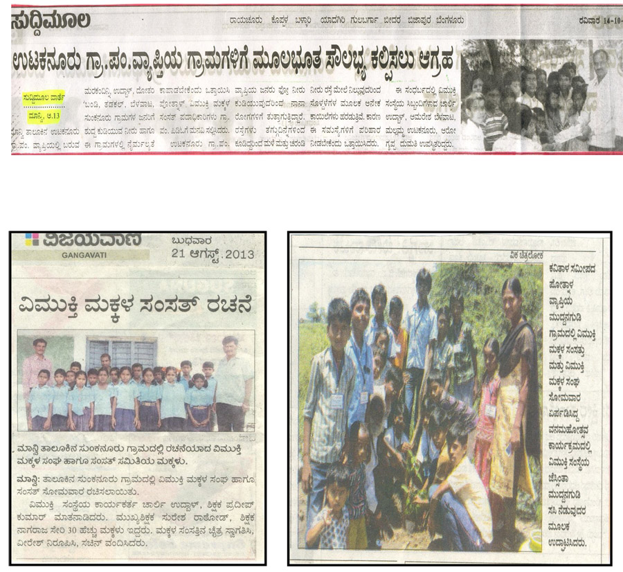 the Book: “Vimukti Makkala Dwani,” (“Vimukti Children’s Voice”).