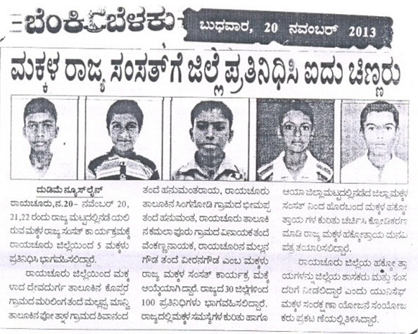District convention on Children’s Parliament by 2013