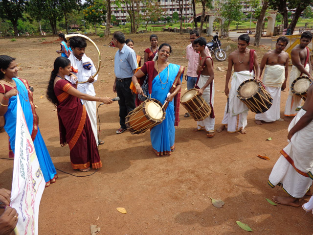 welcomed with the traditional yet meaningful band, trumpet, yakshagana