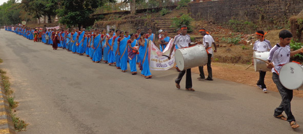 dignified rally that women took on the main roads of Ujire, chikkmagalur