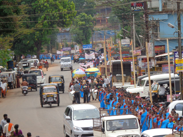 music, nasik band and women with kalasa, the huge yet disciplined rally