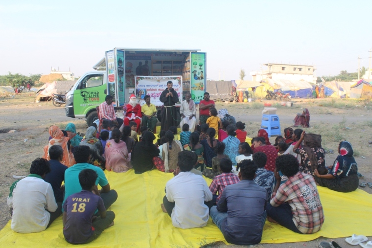 Pothnal premises with 100 underprivileged children and their families, creating