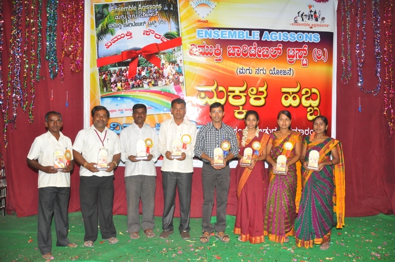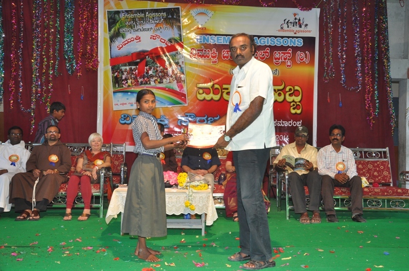 prizes and trophies to the winners, the young children from vimukti