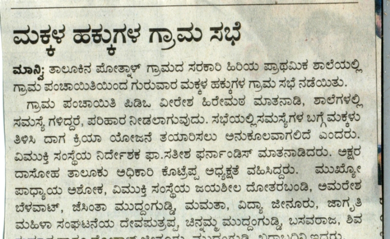 in the “Makkala Grama Sabha” (children’s gram sabha) at Government