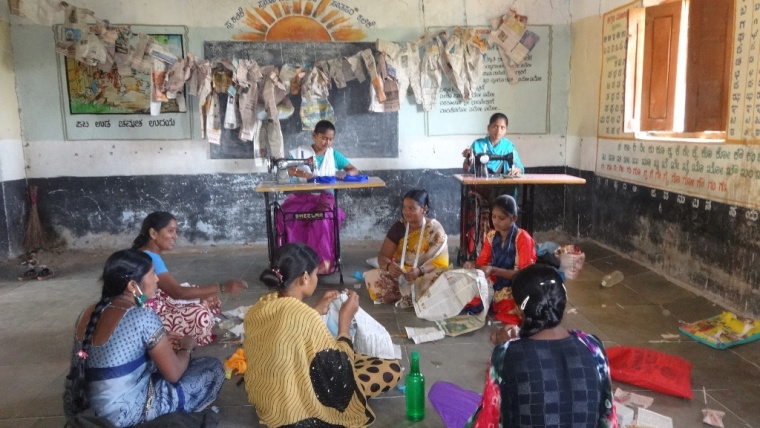 teaching classes, providing raw material like threads, needles, clothes,